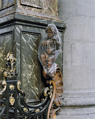 Ne sous-estimons pas le geste: en cadrant un ange en bois sculpté de cette église, Maud Faivre évoque la richesse d'ornements liturgiques qui fait la renommée de cet édifice et témoigne de son écriture baroque. Une allusion donc, précise et circonstanciée. Nous ne sommes pas hors sujet.